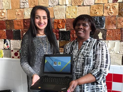 Interested in increasing the school’s technology options for every day learning, Amrita planned to use her own money to buy a laptop and donate it to the school. She then thought of how she could get more computers. In February 2017, she challenged area businesses to be like her and make a donation to buy laptops.