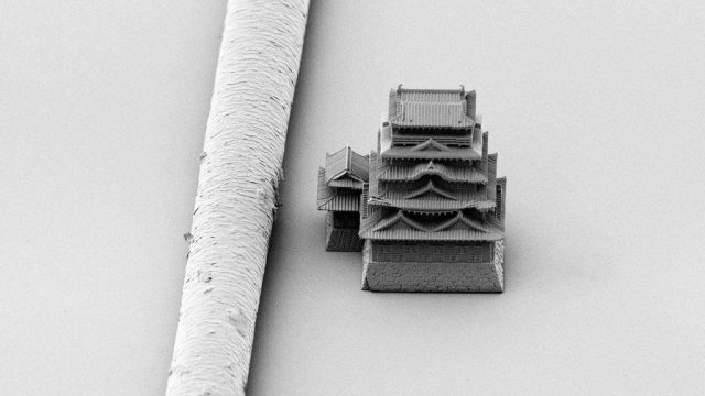 If the material is processed further, it is apparently possible to reproduce Fukuyama Castle with a height of 0.2 micrometers, which is 1,000 times smaller than the current miniature model.