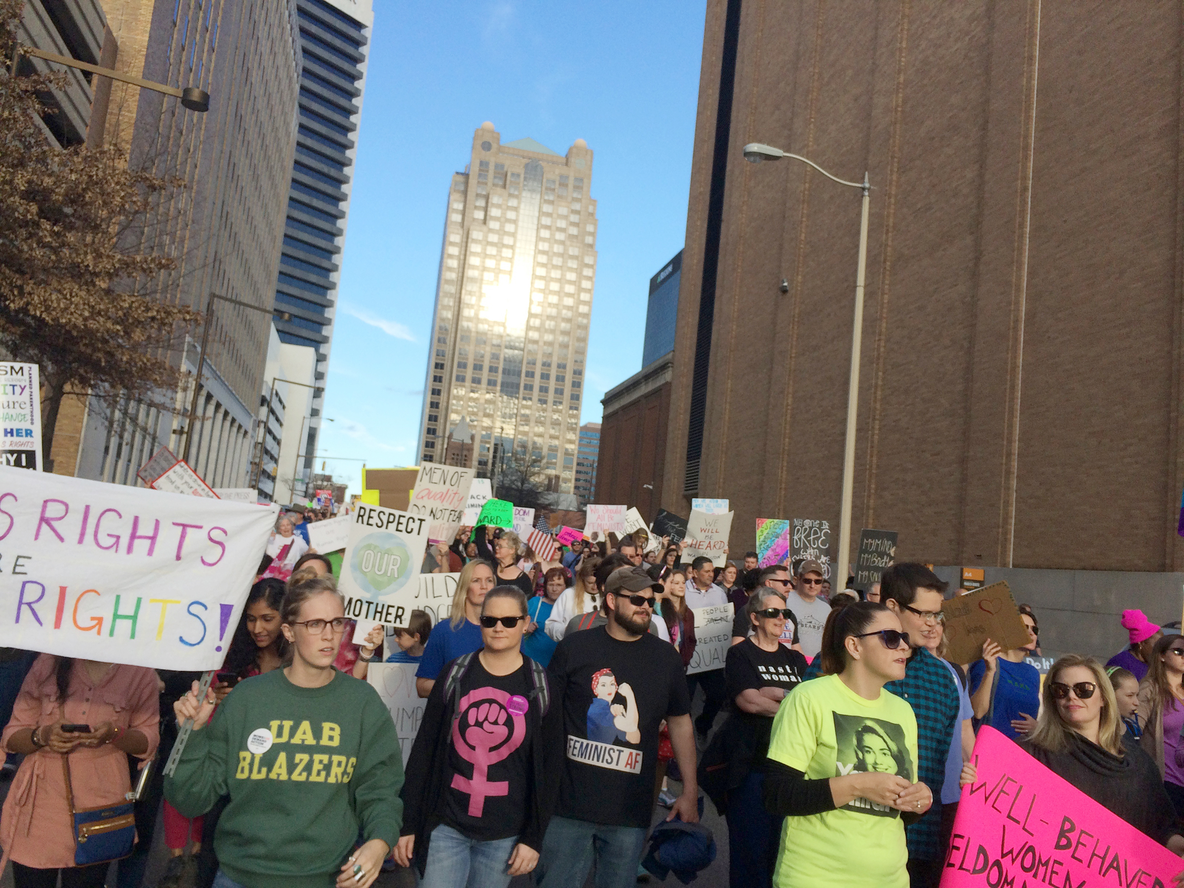 Thousands of protesters from across Alabama marched from Birmingham’s Kelly Ingram Park through downtown in solidarity with the national Women’s March on Washington Saturday.