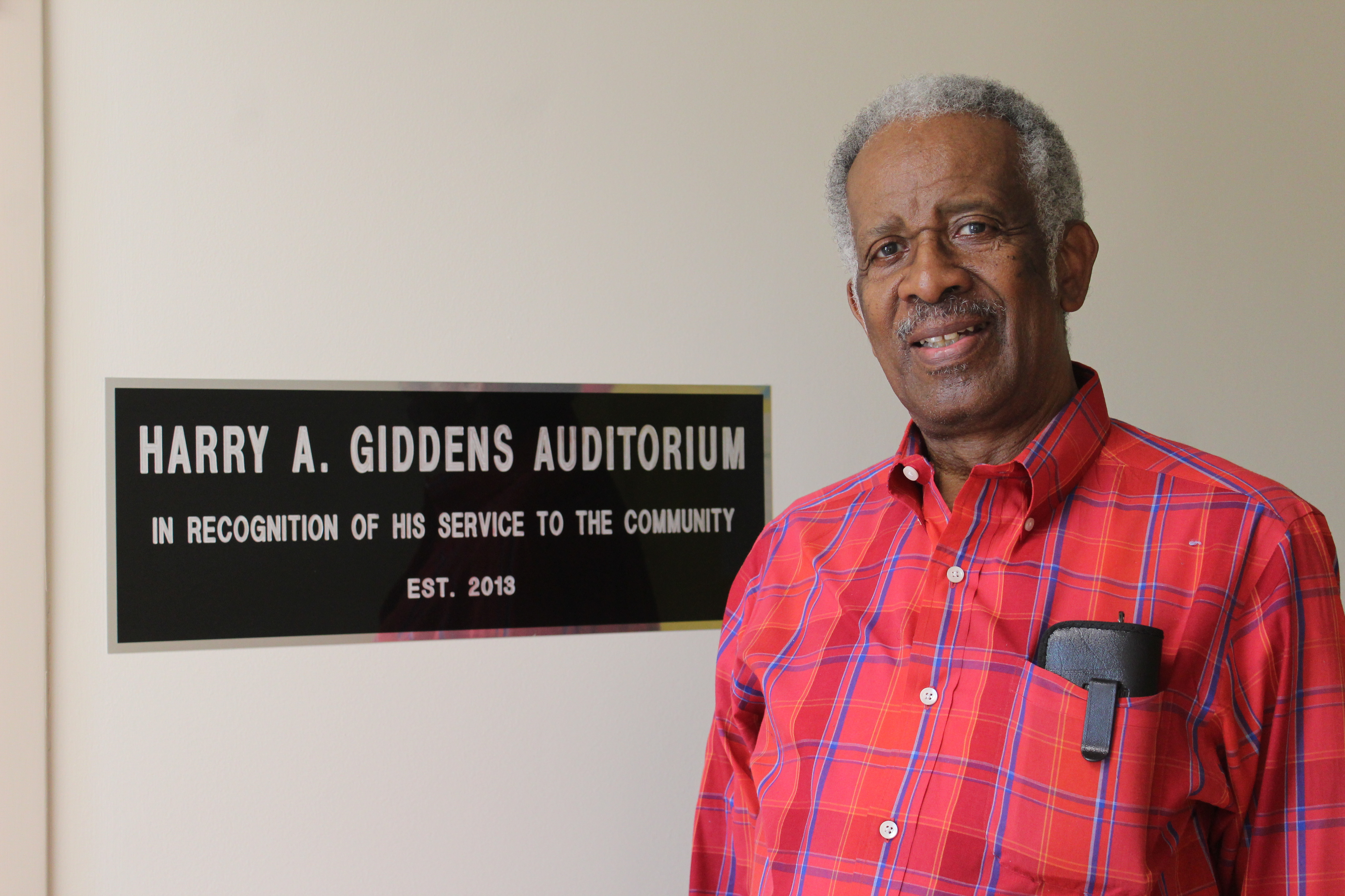 Harry A. Giddens sat in the Harry Giddens Dedication Room at the Brownville Heights Community Center in East Birmingham. The room was dedicated to him after he, along with the late City Council President Maxine Herring Parker, worked to get the center built for the neighborhood. The facility opened in 2013.