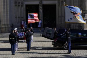 The funeral on a sunny and chilly day drew dignitaries and friends from across the political and military spectrum. They included President Joe Biden and former presidents George W. Bush and Barack Obama, former secretaries of state James Baker, Condoleezza Rice and Hillary Clinton, former Defense Secretary Robert Gates, and the current chairman of the Joint Chiefs, Army Gen. Mark Milley.