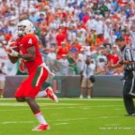 BLACK PR WIRE) – Everyone knew that Florida would bring a top-ranked defense when they suited up to play Miami in South Florida on Saturday. But what surprised nearly the entire record crowd of 76,968 who witnessed the Miami Hurricanes beat the 12th ranked Florida Gators, was that Miami has a pretty good defense, too. With the upset win, Miami (2-0) jumped up the AP poll to #15, while Florida (1-1) dropped to #18. Miami’s defense stopped Florida at just about every critical moment in the game, most notably by intercepting Florida QB Jeff Driskel twice in Miami’s red zone and recovering three forced fumbles. The most costly fumble was caused by Miami DE Tyriq McCord as he beat Florida’s LT around the corner and hammered Driskel as he was about to throw on their own eight yard line. Two plays later, Miami RB Duke Johnson scored around the left end untouched, making the score 21-9, with only 3:29 left in the game. Florida bested Miami in nearly every major statistical category, except, of course, the score. Florida’s offense entered Miami’s red zone six times, but came away with only a touchdown and a field goal to show for it. Miami QB Stephen Morris started the game red hot, throwing two touchdown passes in the first quarter, including a beautiful 52 yard bomb to Miami WR Phillip Dorsett. It was the first time Florida had allowed two touchdown passes in the first quarter since LSU’s JaMarcus Russell did it in 2005. Florida’s vaunted defense stepped up, though, and held Miami’s high powered offense to just 69 total net yards after the first quarter. Not to be outdone, Miami’s defense was also clearly up to the challenge. They limited Florida’s ground game to just 2.8 yards per carry and harassed the Florida QB all game long. Jeff Driskel did turn in a career day setting personal records for passing yards (291) and passing attempts (33). But Miami’s defensive secondary intercepted him twice, one on Miami’s four yard line and the other on Miami’s 12 yard line. Miami’s defense also sacked him twice in the fourth quarter as Driskel was desperately trying to engineer a comeback. Miami now leads this heated intrastate rivalry, which began back in 1938, 29-26. Because Florida will soon be playing an extended SEC conference schedule, they are unwilling to continue to schedule Miami as a regular non-conference foe, and there are no more games scheduled between these two teams. Apparently, the Florida faithful will have to stomach this gut-wrenching loss for a long, long time. Miami fans wouldn’t have it any other way.