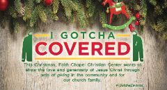 The public is invited to attend the “I Gotcha Covered” Christmas service on Sunday, December 22, 2013 at 10 a.m. at Faith Chapel Christian Center, 100 Lexington Street, Birmingham, Alabama 35224.