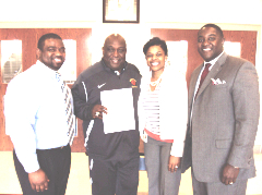On January 16th, Alabama Power’s Foster Ware, North Area Manager, and Rasheeda Burton, Business Office Manager, visited the school to present the award. Pictured are Ware and Burton with Wenonah High School’s Athletic Director Henry Pope and defending state champion girls’ basketball coach Emmanuel Bell. The school’s principal is Regina Carr-Hope.