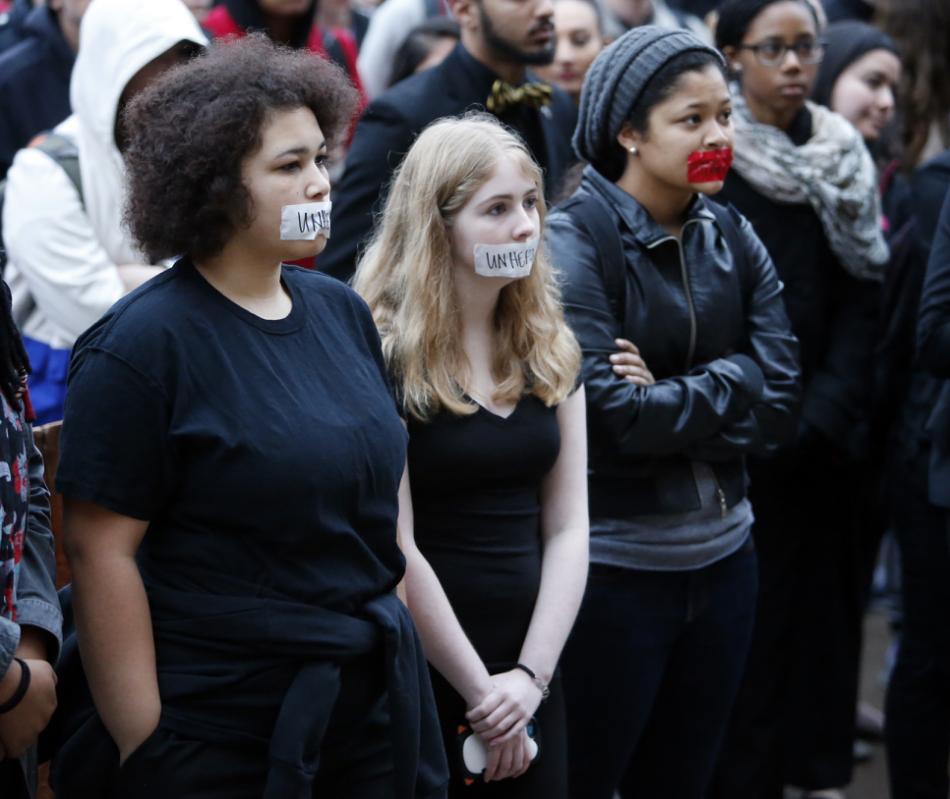photo: Students at the University of Oklahoma protest racist comments made by a fraternity on Monday, March 9, 2015 in Norman, Okla. University President David Boren lambasted members of Sigma Alpha Epsilon fraternity on Monday who participated in a racist chant caught on video, calling them disgraceful and their behavior reprehensible, and ordered that their house be vacated by midnight Tuesday. (AP Photo/The Oklahoman, Steve Sisney)