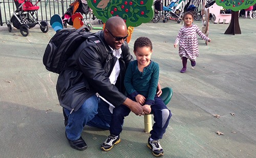 Christopher G. Roberts, a blind father, and his children playing in the park.
