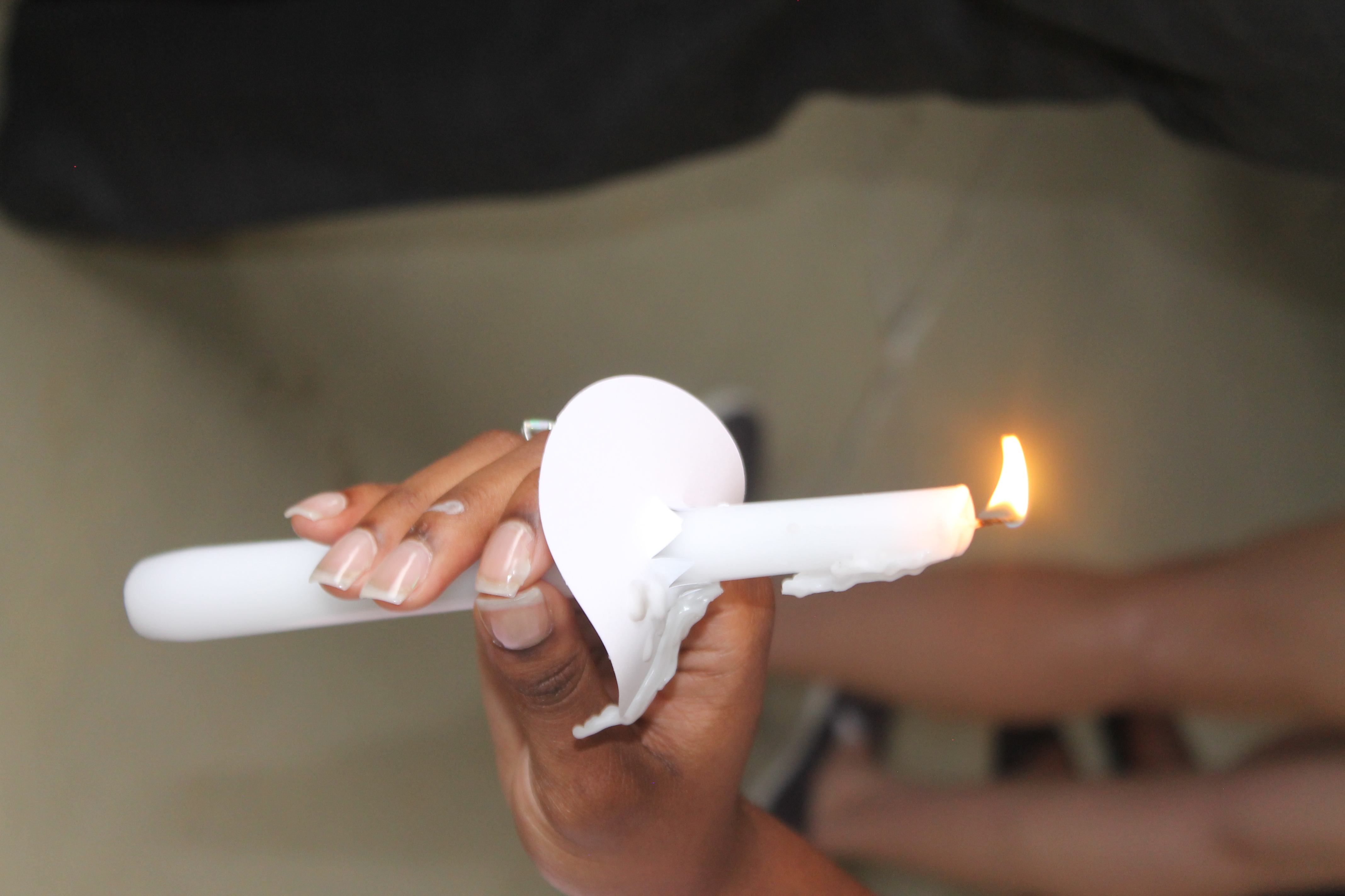 Once the students lit their candles, they dispersed into the crowd to light everyone elses candle for a moment of silence.