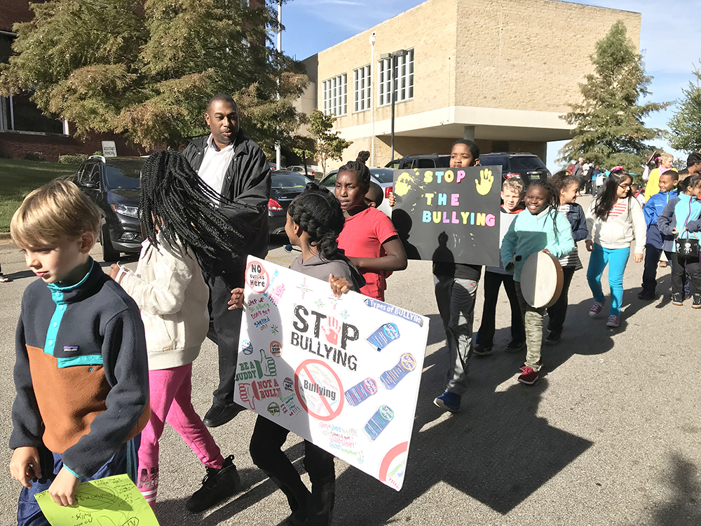 Today, the students and staff at Avondale Elementary School took part in a “Stomp Out Bullying” parade. Representatives from pre-K to 5th grade — along with cheerleaders, teachers, custodians, and support staff — marched while sharing an anti-bullying message to the 400-plus students at the school.