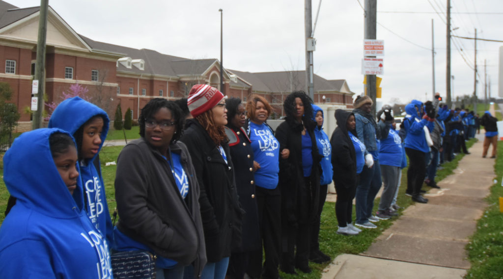 14: Mayor Woodfin and Birmingham City Schools Superintendent Dr. Lisa Herring join dozens of students at Huffman High who walk out of school in protest of gun violence and to raise awareness of school safety. The students at Huffman are among thousands across America who leave school for 17 minutes, exactly four weeks after 17 students die in a Florida school shooting and one week after Courtlin Arrington, a senior, was killed in a shooting at Huffman, where students form a circle around the flag at 10 a.m.