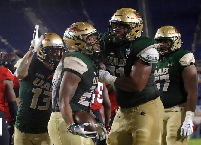 The University of Alabama at Birmingham Blazers beat Middle Tennessee State University Blue Raiders 27-25 to become 2018 Conference USA Champs.