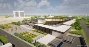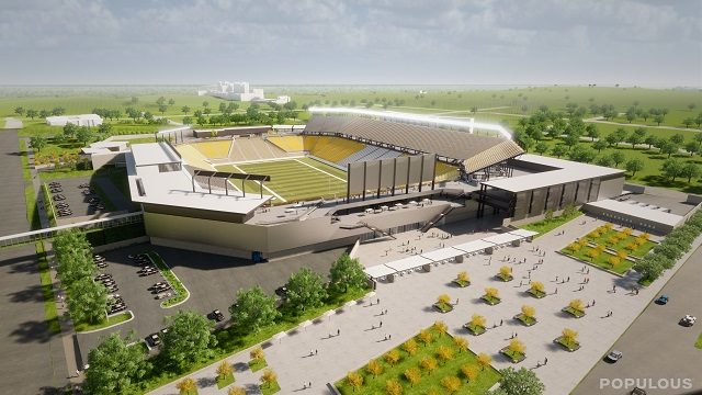 The current design is for a stadium with seating for up to 55,000. Officials said the design will be tweaked up until vertical construction begins.
