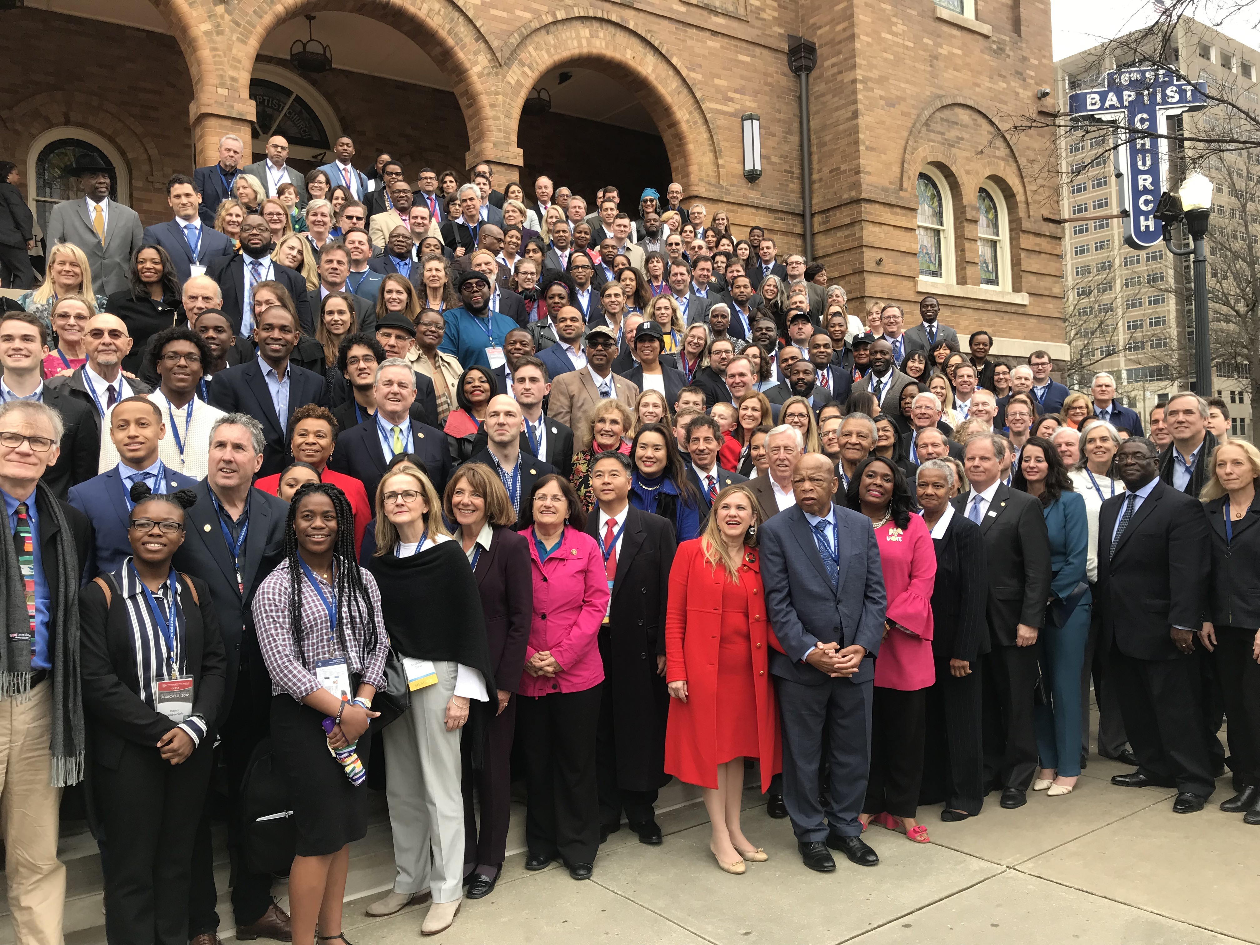 Sen. Doug Jones (D-AL), Rep. Terri Sewell (D-AL), civil rights icon Rep. John Lewis, (D-GA), who is from Alabama, and Birmingham Mayor Randall Woodfin were joined by dozens of members of Congress making a weekend-long civil rights pilgrimage through Alabama, visiting spots that were instrumental in the fight for racial equality under the law decades ago.