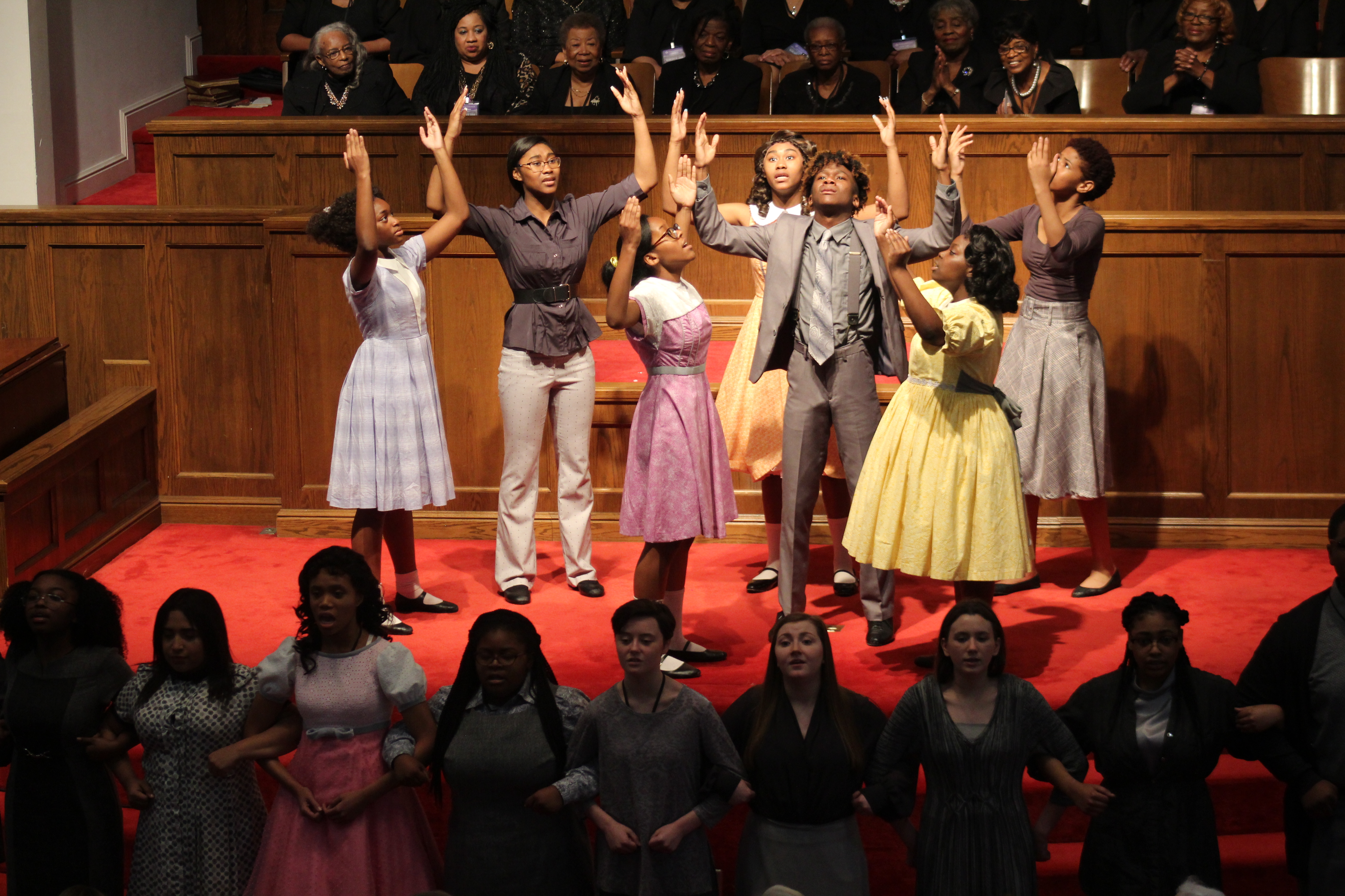At Sixteenth Street Baptist Church, delegation members applauded a handful of civil rights veterans as they stood in the sanctuary and then watched a play depicting the lives of the bombing victims.