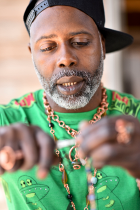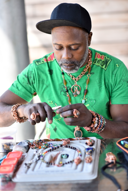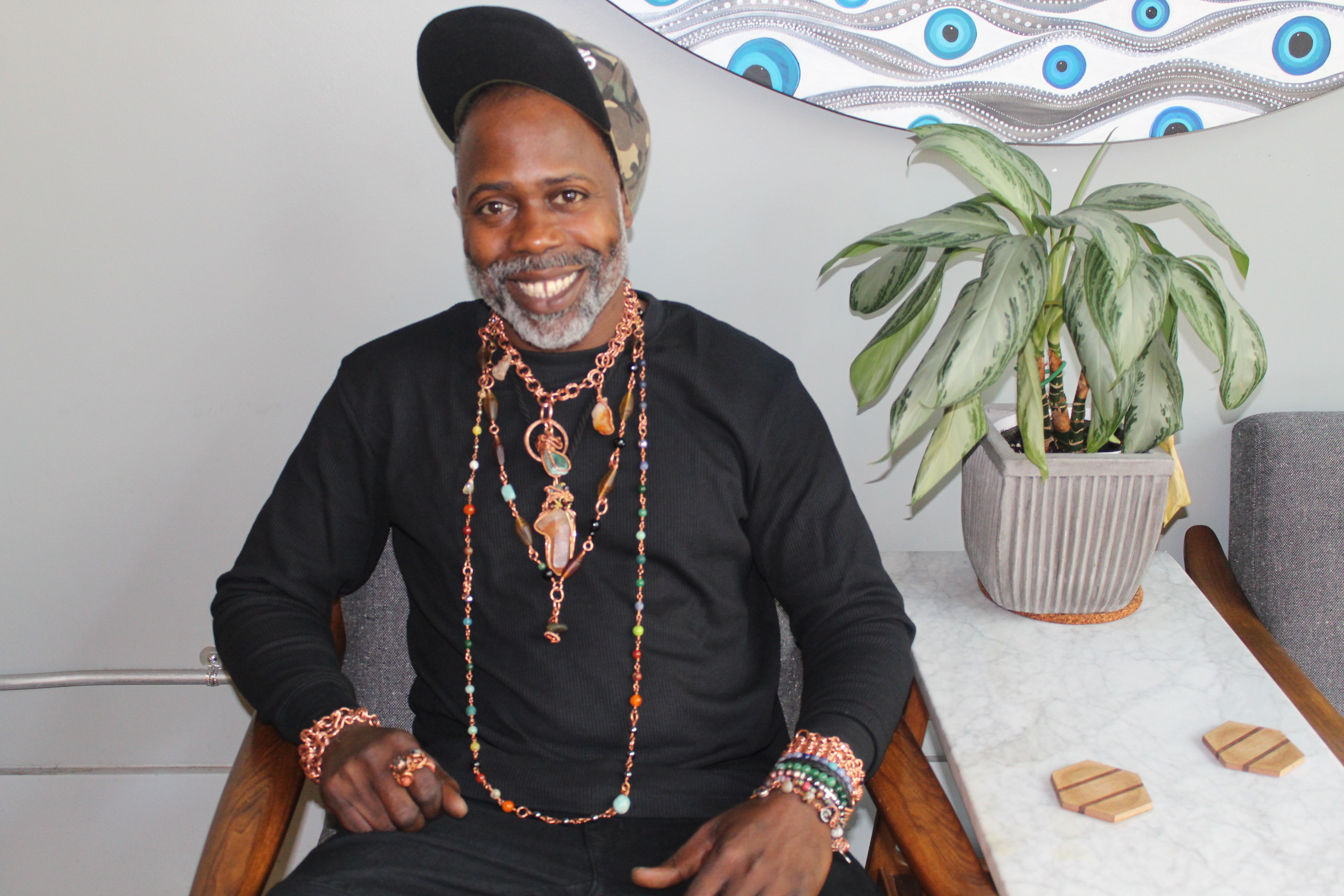 “They’ve tried other methods, as far as meditation, … for focus, … for confidence,” he said. “I’m for the people, so there’s no judgment. … It’s just for the people. … It’s just for the common person, … everyday, working class. Some of them are artists, some of them are not from America. … [My jewelry is] usually for the common person who’s interested in wearing art and energy.”
