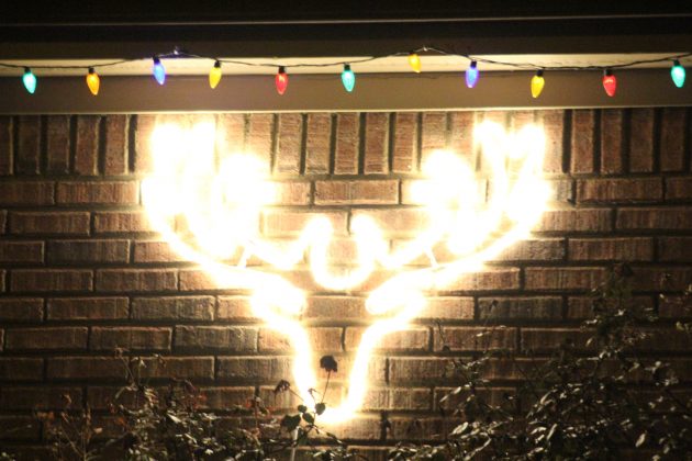 A Christmas light display on the outside of a Homewood residence. (Ameera Steward, For The Birmingham Times)