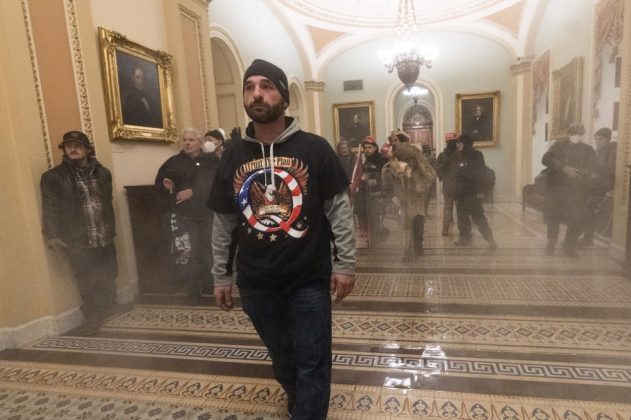 Rep. Scott Peters, D-Calif., told reporters he was in the House chamber when rioters began storming it. Security officers “made us all get down, you could see that they were fending off some sort of assault.” He said they had a piece of furniture up against the door, the entry to the House floor from the Rotunda. “And they had guns pulled,” Peters said.