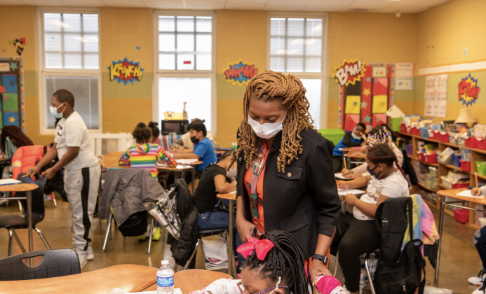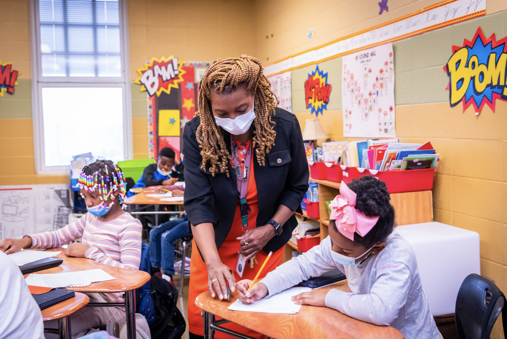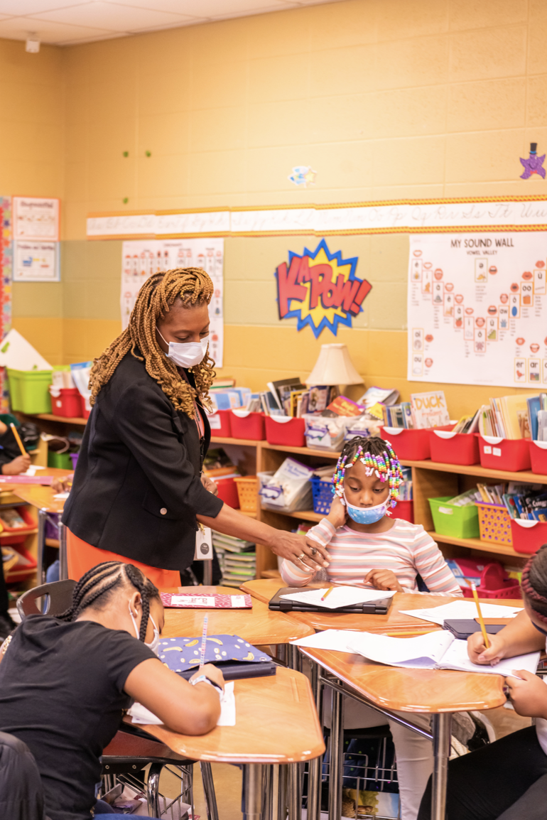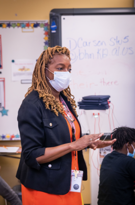 Though she’s the principal, Drake’s average Thursday looks like this, working alongside her staff of teachers to educate and motivate.