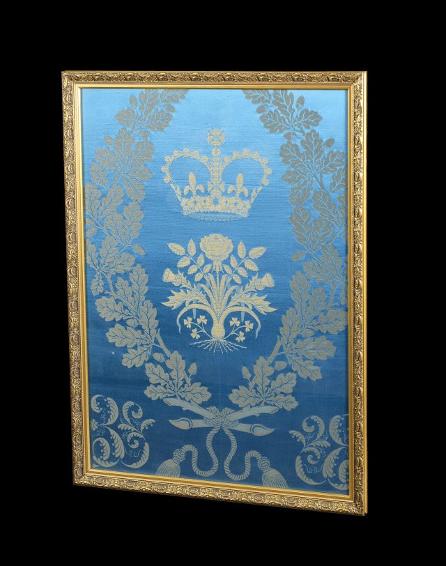 The special silk was hung alongside other historical panels, setting the scene for the special ceremony and can be seen in many historic photographs of the Coronation.