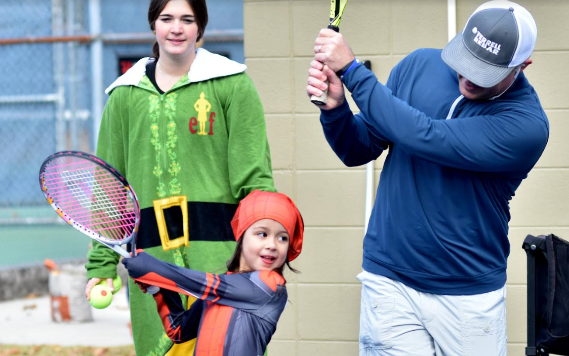 The event at West Homewood Park held with a Halloween theme as some participants came dressed as their favorite characters. A skeleton with Jack-o-lantern glasses and a tennis racket greeted the young players as they arrived on the court.