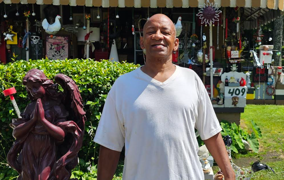 Dozens of items including pots, pans, clocks, jars, unicorns, wind chimes and sculptures of angels can be found outside his home. “[The angels] are my favorites,” he said. “I have two of them — little ones and the big ones.
