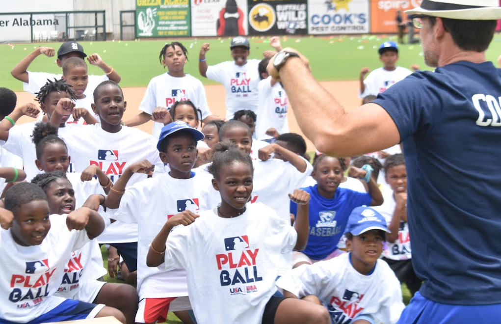Major League Baseball hosted Play Ball, its signature youth engagement activity for about 125 Birmingham children who were joined by Play Ball Ambassador Coach Ballgame and other special guests, as the group went through fun- and fitness-focused activities designed to show the many ways the game can be played.