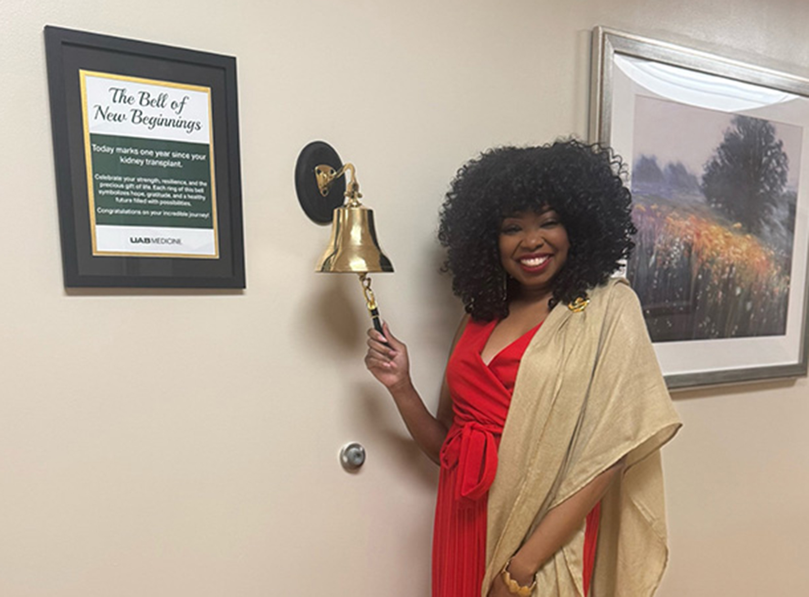 When kidney transplant patients at the University of Alabama at Birmingham Comprehensive Transplant Institute celebrate their first year after transplant, they ring a bell. The bright tone of the “Bell of New Beginnings” resonates throughout the clinic, marking the first anniversary of a journey toward a new chance at life.